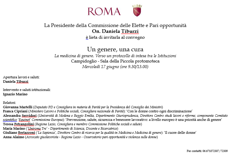 Qui di seguito si riporta l'invito della Presidente della Commissione delle Elette e Pari opportunitą: On. Daniela Tiburzi