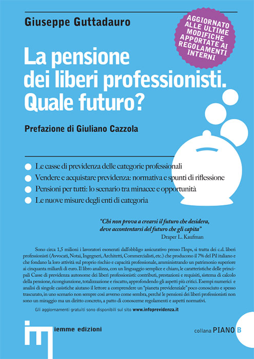Il Dott. Guttadauro, socio fondatore del portale www.infoprevidenza.it, ha scritto il libro dal titolo "La Pensione dei liberi professionisti. Quale Futuro?".
